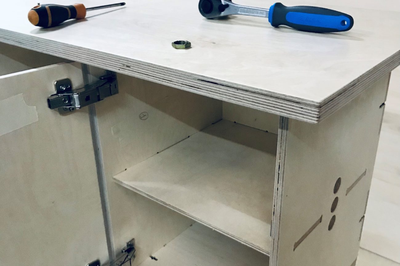 Contreplaqué usiné par CNC, vernis mat, logo en impression numérique finition satin.