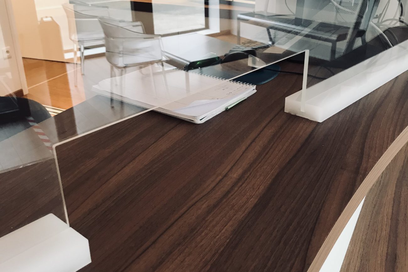 Conception, fabrication et installation d’éléments de protection COVID en plexiglass.