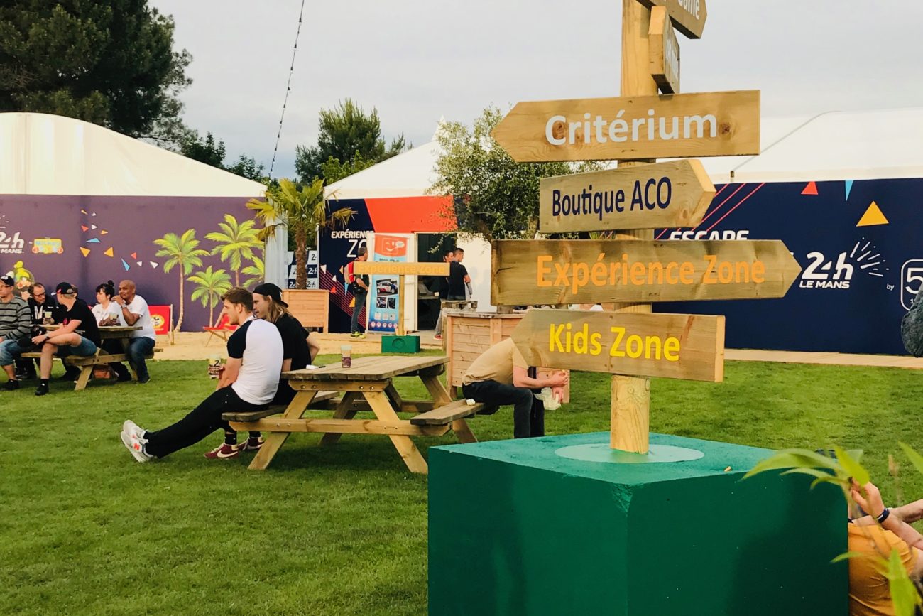Conception, fabrication et installation d’éléments signalétiques bois pour le village des 24h du Mans.